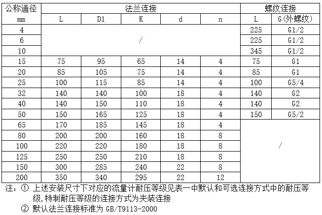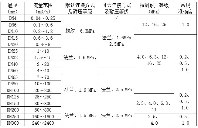 流量范圍及工作壓力 表一